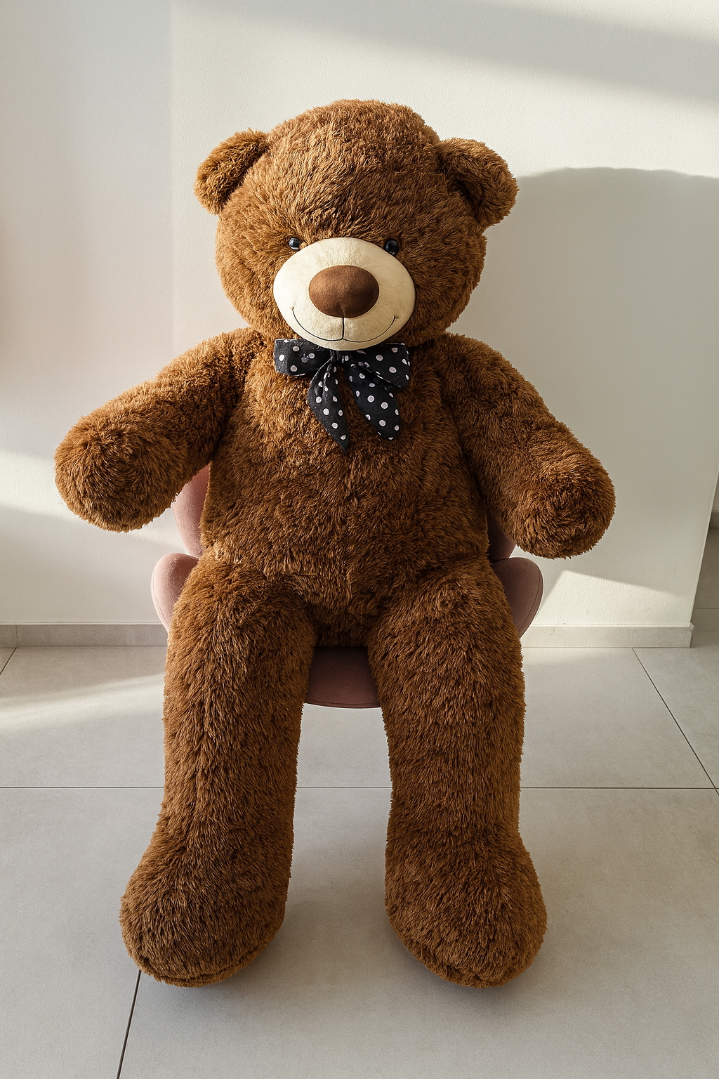 דובי ענק גריזלי סופר שמן – הדובי שכולם מדברים עליו ברשתות החברתיות! בגודל של 160 ס"מ, הוא מרשים, בולט ושובה לב. מגיע בצבע חום-זהוב ייחודי, עם פרווה נעימה, מגע רך ומילוי מפנק במיוחד. הדובי האולטימטיבי כמתנה ליום האהבה, יום הולדת, יום נישואין או כל אירוע מיוחד שתרצו להפוך לבלתי נשכח.